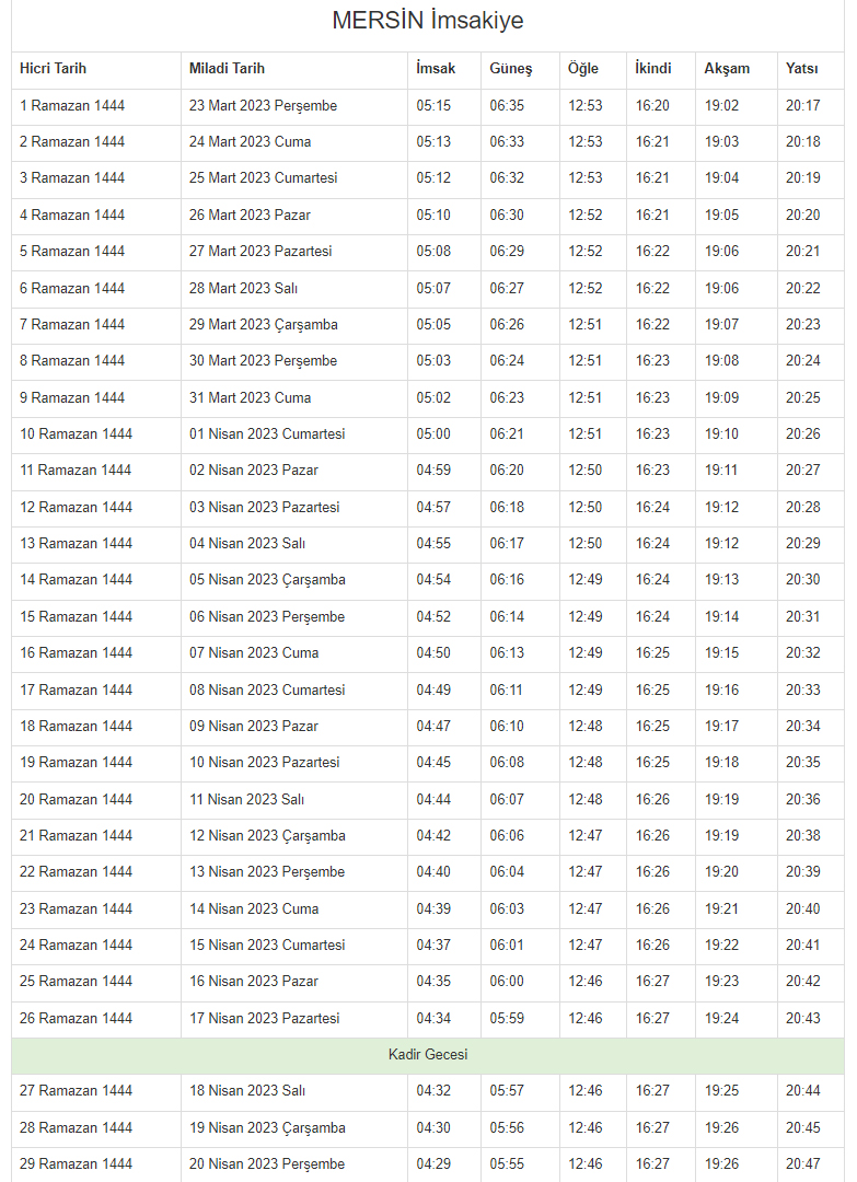 İŞTE 2023 MERSİN İMSAKİYESİ