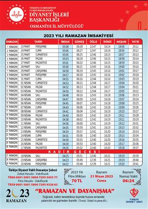 İŞTE 2023 OSMANİYE İMSAKİYESİ