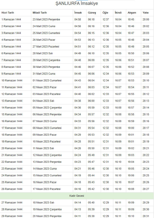 İşte 2023 Şanlıurfa imsakiyesi