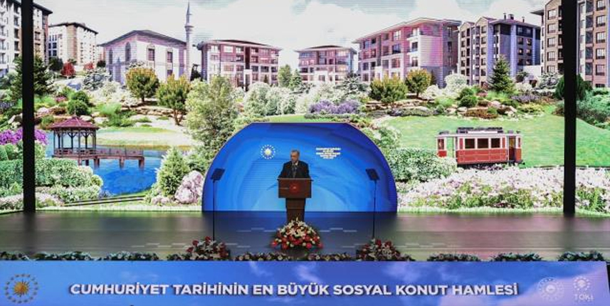 Milyonların merakla beklediği Cumhuriyet tarihinin en büyük sosyal konut projesinin tanıtımı yapıldı. Detayları açıklama üzere kürsüye çıkan Cumhurbaşkanı Erdoğan, "Cumhuriyet tarihinin en büyük sosyal konut hamlesinin mutluluğu içerisindeyiz. Bugün gençlerimize, emeklilerimize, şehit ve gazi ailelerimize, engelli kardeşlerimize ilk yuvalarını milletin evinden müjdeleyen Sayın Cumhurbaşkanımıza sonsuz şükranlarımı arz ediyorum." diyerek konuşmasına başladı.