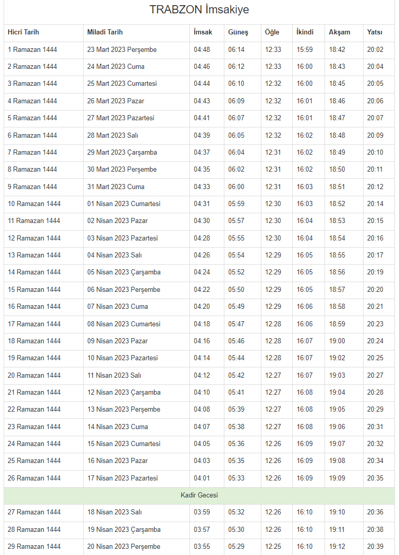 İŞTE 2023 TRABZON İMSAKİYESİ