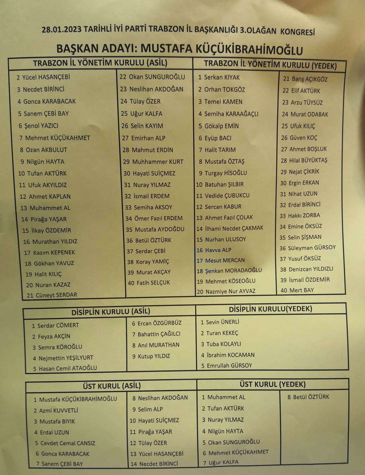 Bu liste, siz değerli delegelerimizin, üyelerimizin ve halkımızın lehine olan her kararı alacak imza yetkisine sahip kişilerden oluşmaktadır.